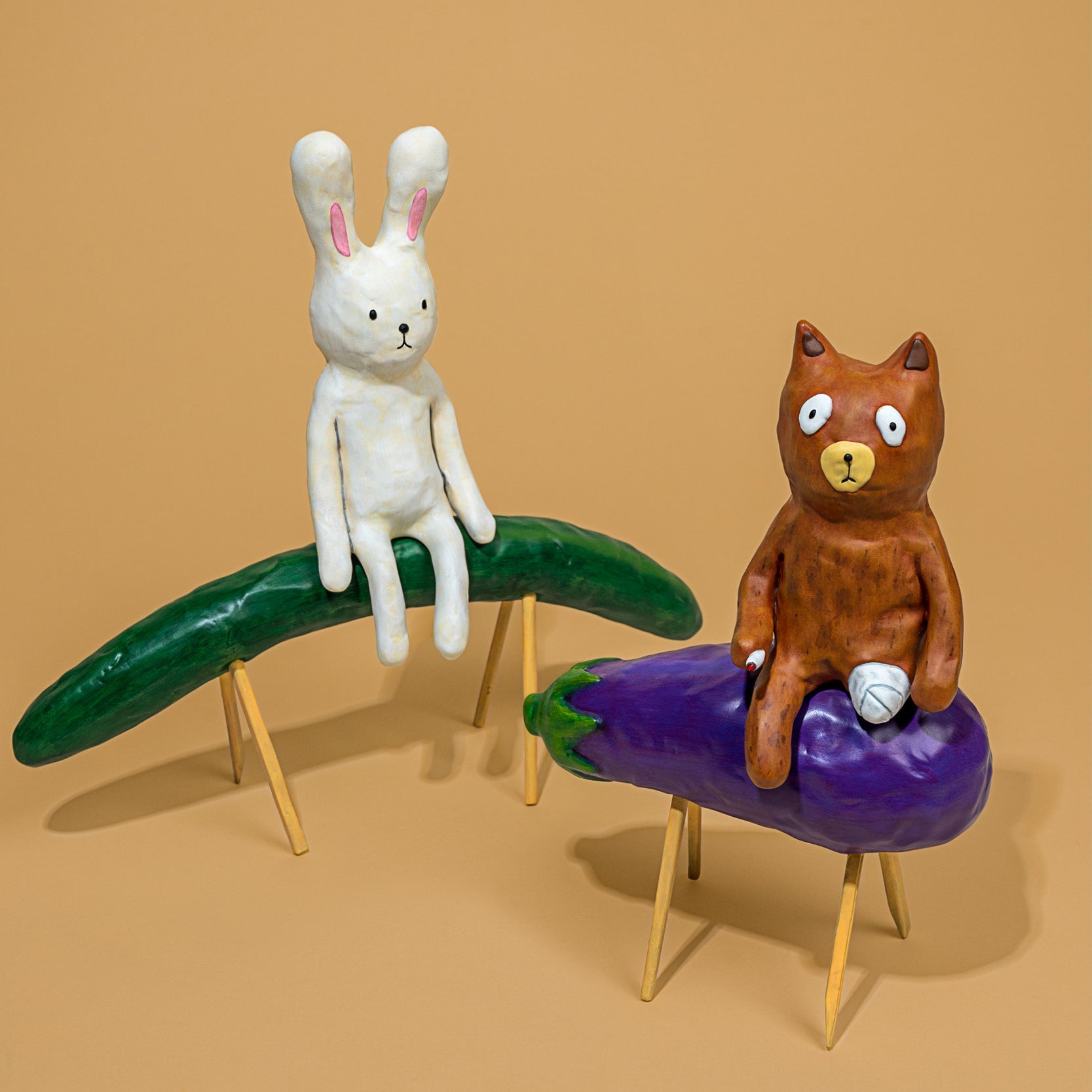 Cucumber horse and Aubergine cow