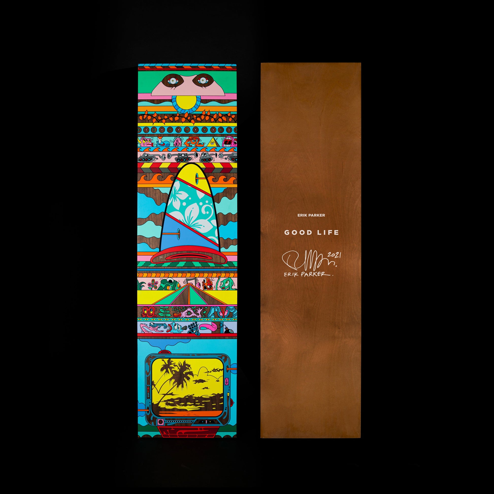 • Material: Silkscreen in colors on wood panel